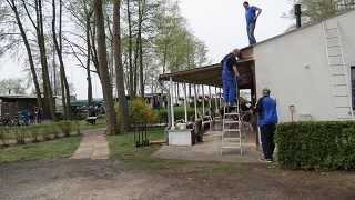 zu unserem 1. Arbeitseinsatz standen am 25. April früh um 8.00 Uhr viele Mitglieder unseres Verein parat. Jürgen Rentmeister, unser Platzwart, hatte den Einsatz gut vorbereitet und somit keine Mühe die Arbeitsgruppen einzuteilen. Es gab wieder viel zu. Mit hohem körperlichen Einsatz wurden folgend Arbeiten ausgeführt. Im Frontbereich wurde der Maschendrahtzaun neu gezogen, die Fassade im Bereich der Mietwohnung erhielt neue Paneele, wie immer waren die Regenrinnen und Abflüsse zu reinigen, Ausbesserungsarbeiten am Angelsteg wurden durchgeführt und 5 unserer Bänke erhielten einen neuen Anstrich, wobei die Drahtbürste nicht zu lachen hatte (siehe Foto unten).