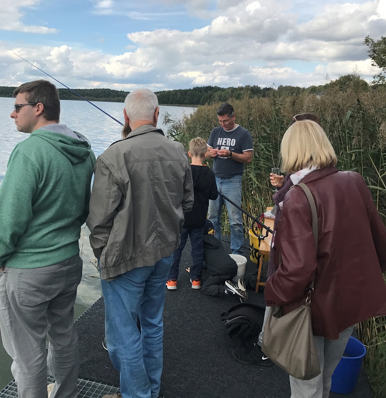 Profiräucherei, leckere Fischbrötchen, ob mit Matches oder geräuchert, Aalwürfeln, Preisschätzen, Fischkunde, Madenziel-Rennen, ein Bastelstand und Geschicklichkeitsangel für unsere Kleinen, Zielwerfen mit der Turnier-Rute ein Aquarium mit den heimischen Fischen unseres Sees, Angeln mit der Stipp-Rute unter professioneller Anleitung von unserem Angelsteg, das alles und vieles mehr konnten wir an unserem 3. Fischfest zum Tag der offenen Tür präsentieren. Bei schönem Wetter und zahlreichen Besuchern, auch unser Bürgermeister war da, hat es wieder Spaß gemacht unseren Verein der Öffentlichkeit zu vorzustellen und darauf ein kräftiges